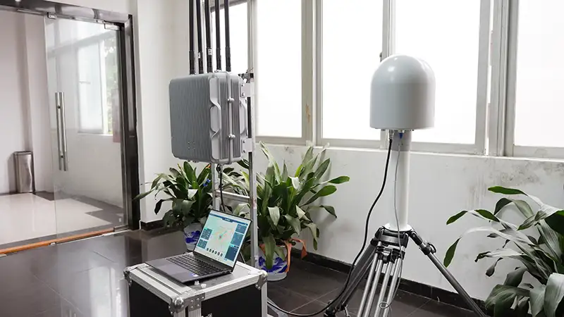 5 किमी ड्रोन सुरक्षा रक्षा प्रणाली यूएवी डिटेक्शन का पता लगाती है जो 700-6300 मेगाहर्ट्ज आवृत्ति रेंज को स्कैन करती है और 5 किमी दूर तक ड्रोन का पता लगाती है (एंटीना के माध्यम से दूरी समायोज्य)। डिटेक्टर डीजेआई एफपीवी सिग्नलों को डीकोड करता है, पायलट स्थिति को इंगित करता है, अनुमति/ब्लॉक सूचियों का प्रबंधन करता है, और दृश्य निरीक्षण के लिए वीडियो फ़ीड प्रदान करता है। डिटेक्टर में 360° कवरेज है और यह खतरों का तुरंत जवाब देने के लिए जैमर से कनेक्ट हो सकता है, जिससे उच्च सुरक्षा वाले क्षेत्रों में वास्तविक समय की निगरानी और बुद्धिमान जवाबी उपाय सक्षम हो सकते हैं।