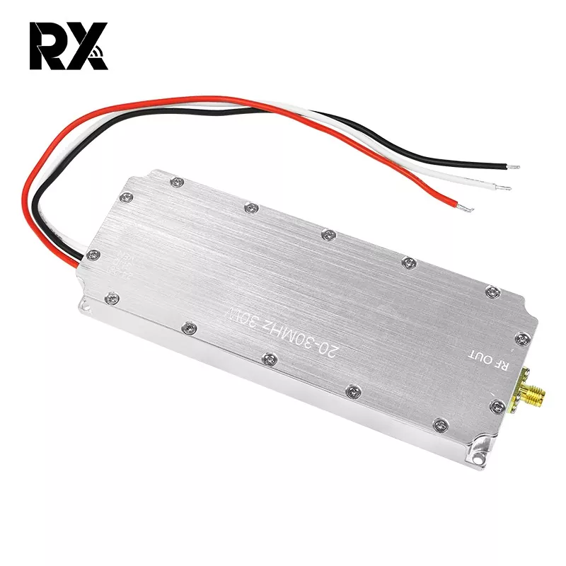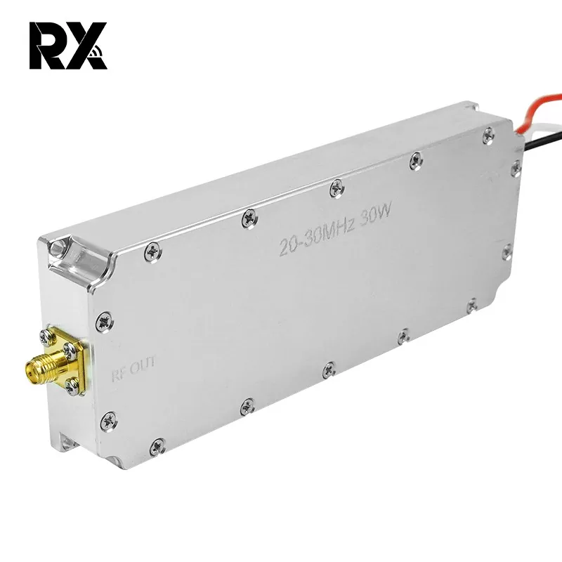 इस नए डिज़ाइन के 30W SMA कनेक्टर ड्रोन जैमर मॉड्यूल 20-30MHz में एक SMA इंटरफ़ेस है, जिसमें 30W आउटपुट पावर और 20-30MHz को कवर करने वाला एक ऑपरेटिंग फ़्रीक्वेंसी बैंड है। आरएक्स द्वारा उत्पादित मॉड्यूल की गुणवत्ता की गारंटी है, और उनका उत्कृष्ट प्रदर्शन और अच्छा उपयोग प्रभाव उन्हें ग्राहकों के बीच लोकप्रिय बनाता है। इसे विशेष रूप से विशिष्ट परिदृश्यों में ड्रोन नियंत्रण के लिए डिज़ाइन किया गया है। यह अभिनव डिज़ाइन न केवल इसकी संरचना को व्यावहारिक स्थापना आवश्यकताओं के लिए अधिक उपयुक्त बनाता है, बल्कि जैमिंग प्रदर्शन को भी अनुकूलित करता है।